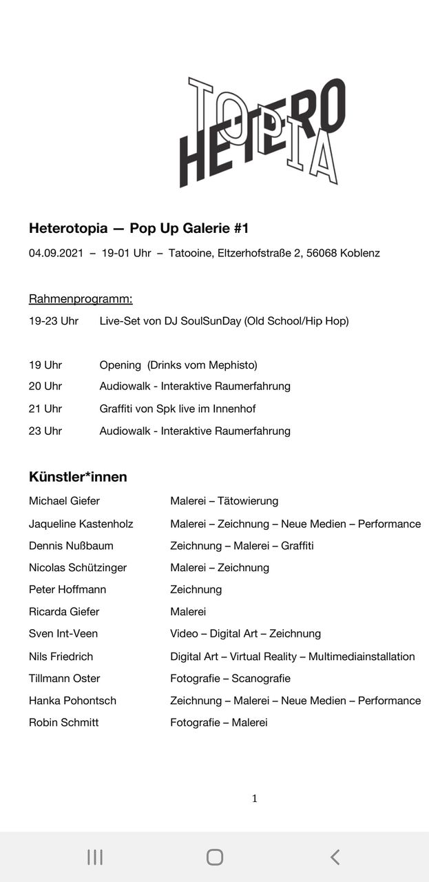 Am 04.September 2021 fand in den Räumlichkeiten des Tatooine-Studios die erste Pop Up Austellung der Künstlergruppe Heterotopia im Zuge der langen Nacht der Museen statt.